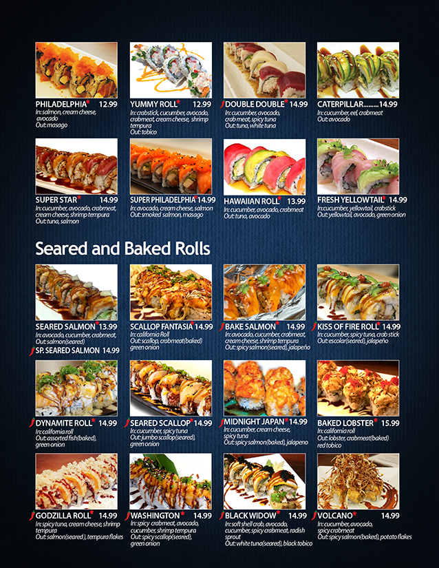 Spicy tuna, cucumber, crab stick with seared escolar, jalapeño, special sauce
